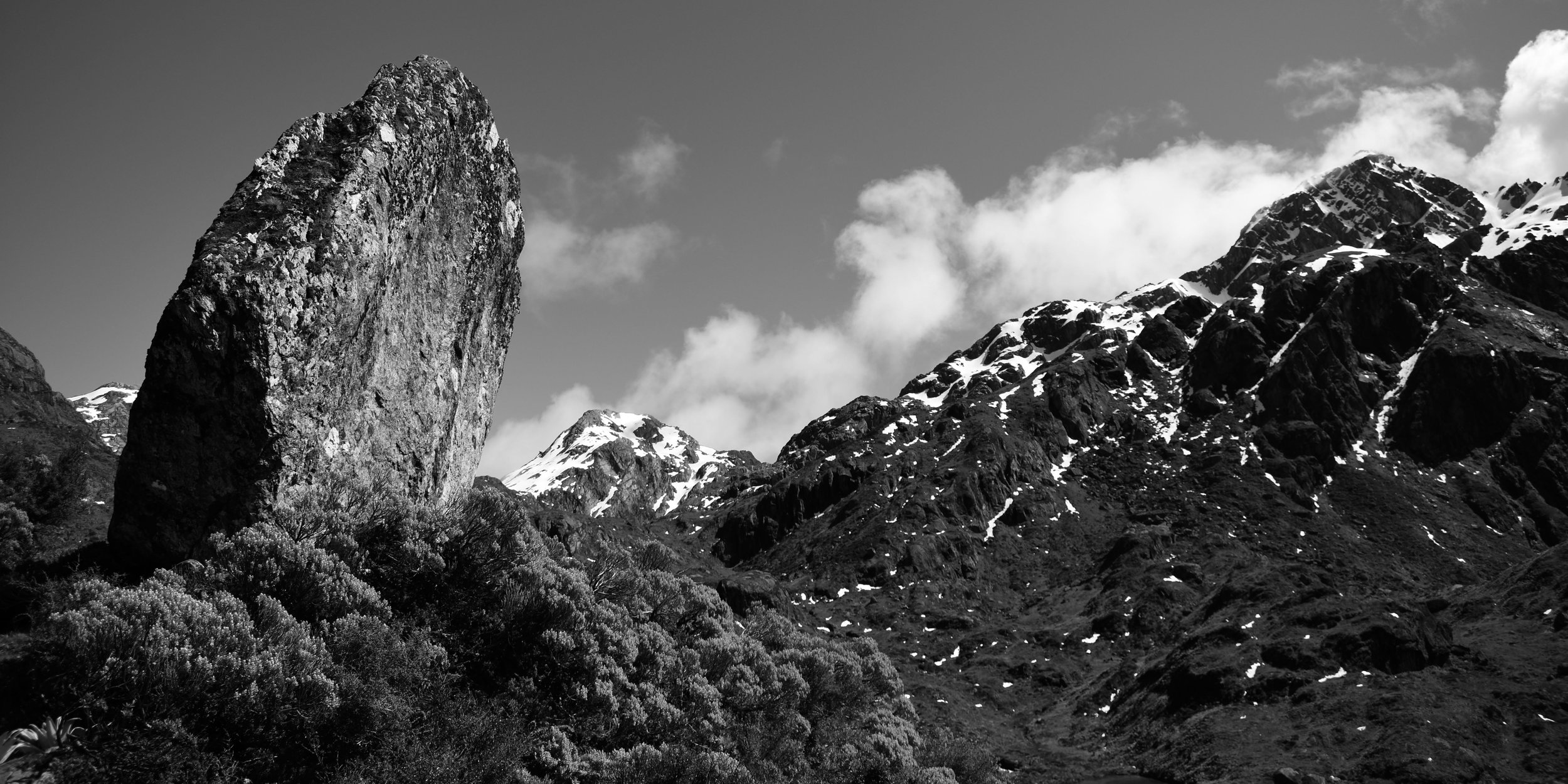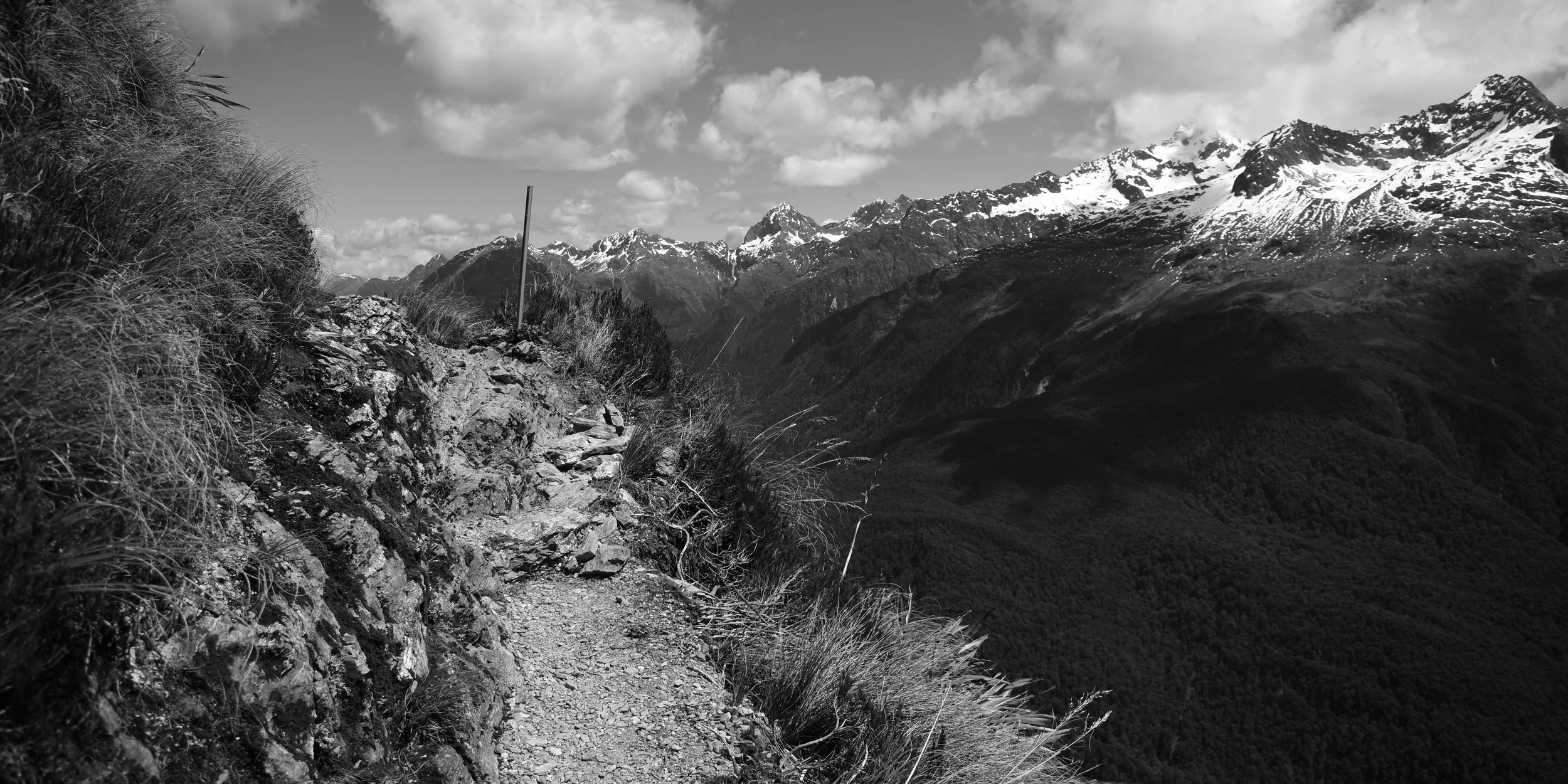 Checking with the ranger before I left, she told me that the saddle was open! I’ll admit to being somewhat disheartened about missing out on that helicopter ride, but it turned out that section was also the most beautiful section to walk. Anyways, I left bright and early while clouds still obscured the mountain I had to hike over. This was the longest day of the hike and included almost all of the elevation change. Just as I passed the Routeburn falls waterfall, the weather started to clear and the sun beamed into the grandeur all around me. About halfway through the days hike you end up near the saddle, overlooking a truly giant alpine lake. The signs telling you not to stop because you were in an avalanche danger zone were super motivating for the uphill bits.