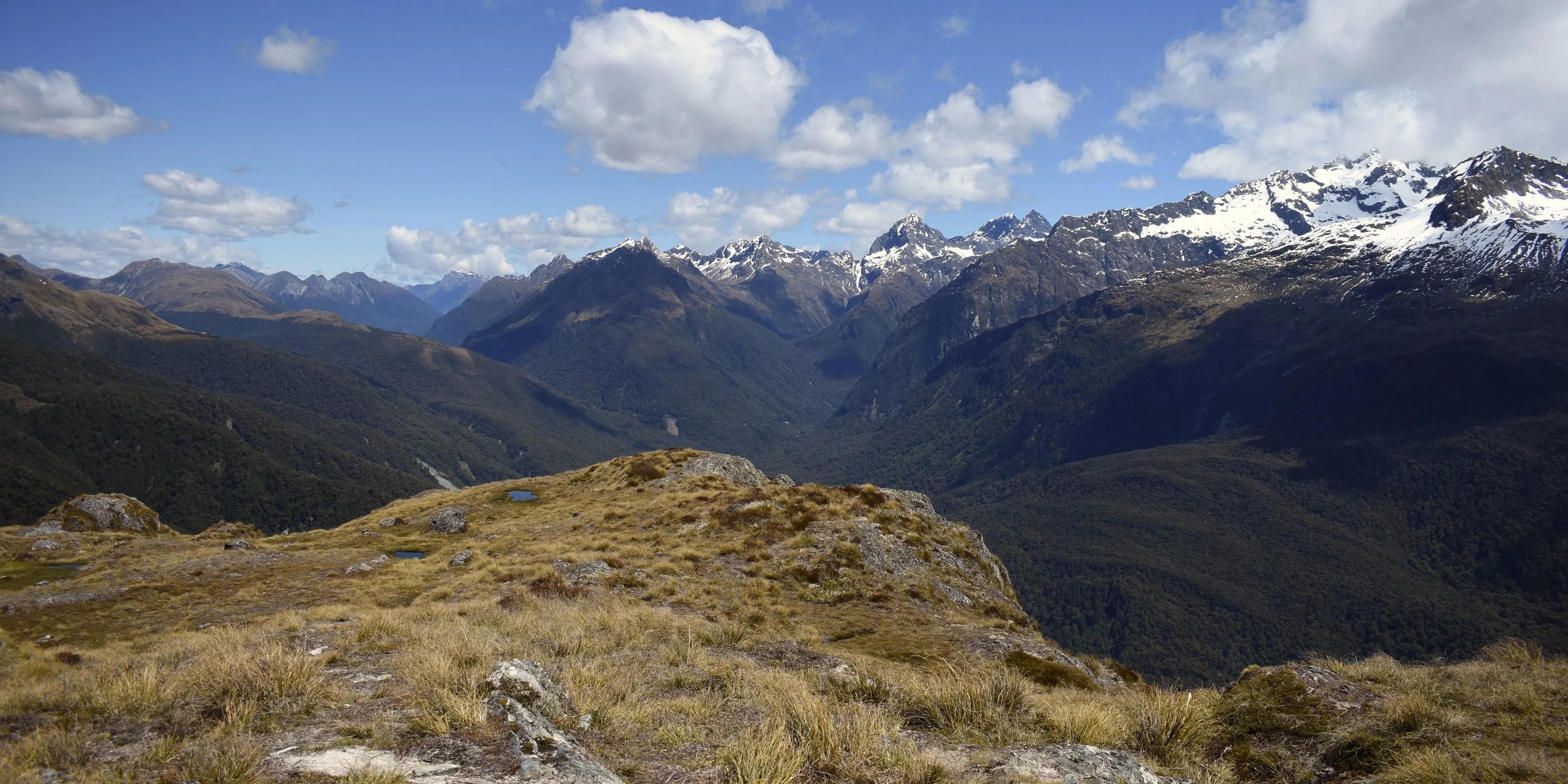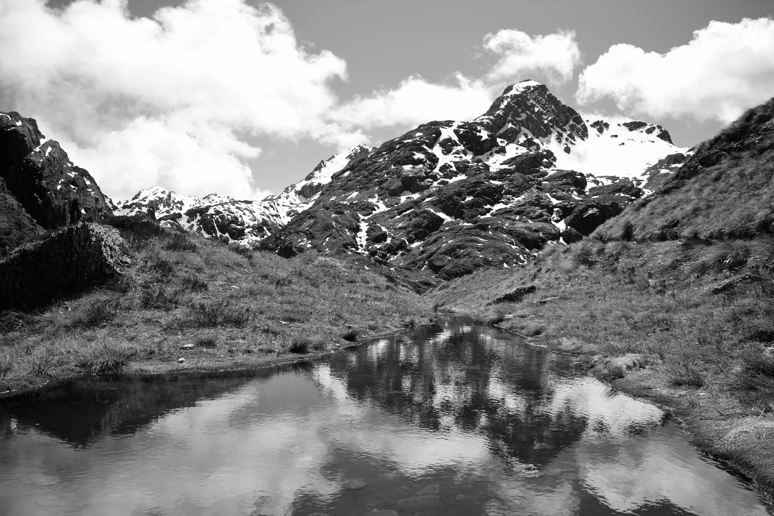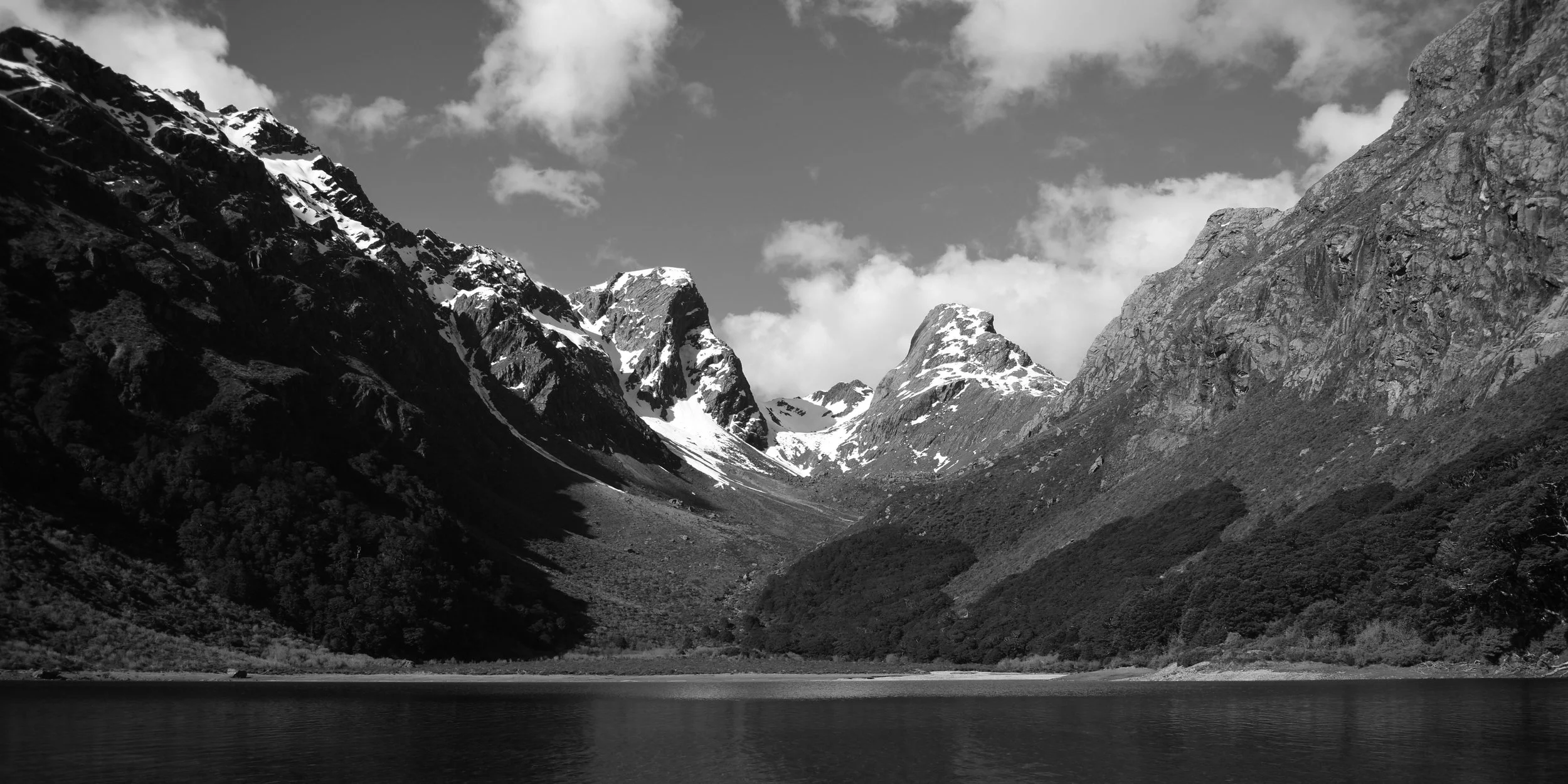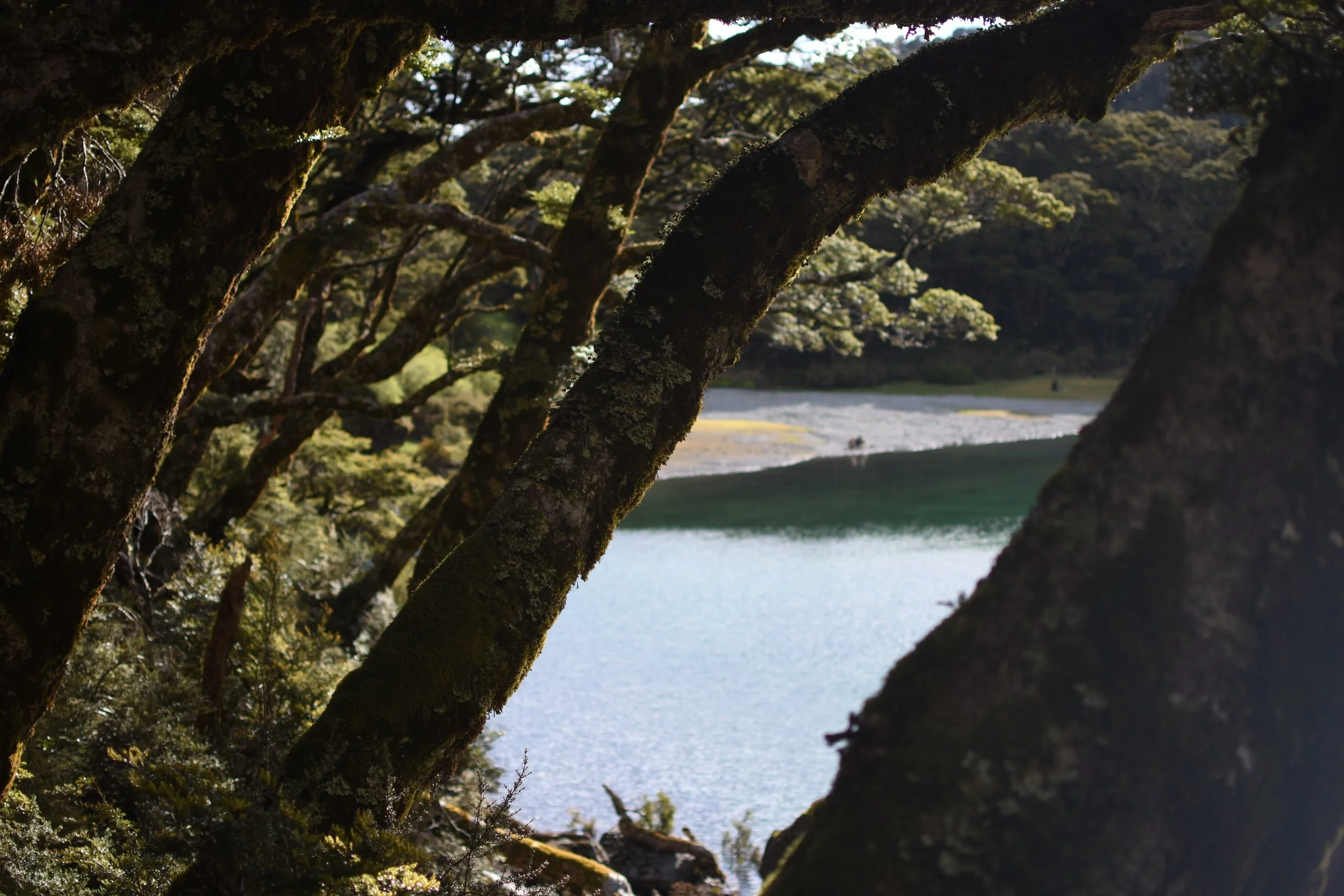 Upon reaching the saddle you officially cross over into Fiordland, and the looking across one giant glacial valley to mountains on the other side, you could see hanging valleys lining the walls of rock, all feeding into the main valley below. After the saddle the trail hugs the border between the lip of the valley and the base of the mountains. By the time you see lake Mackenzie (my next campsite) down below, are thoroughly exhausted from the exposure to the sun. After about a thousand switchbacks down into the lake valley, nothing was going to stop me from a swim. IT WAS SO COLD! from under the crystal clear mountain water you could see all the way up waterfalls in the valley to the snow capped peaks that fed it. I swam until my whole body burned from the cold, knowing I could warm up in the piercing sunshine after.