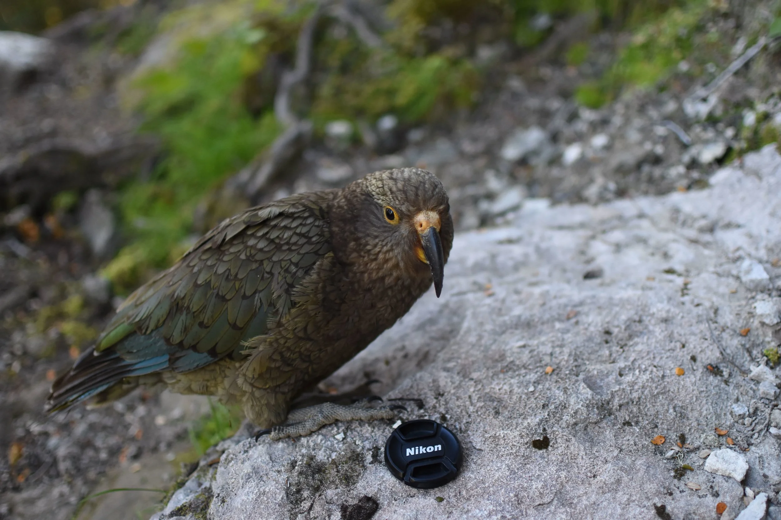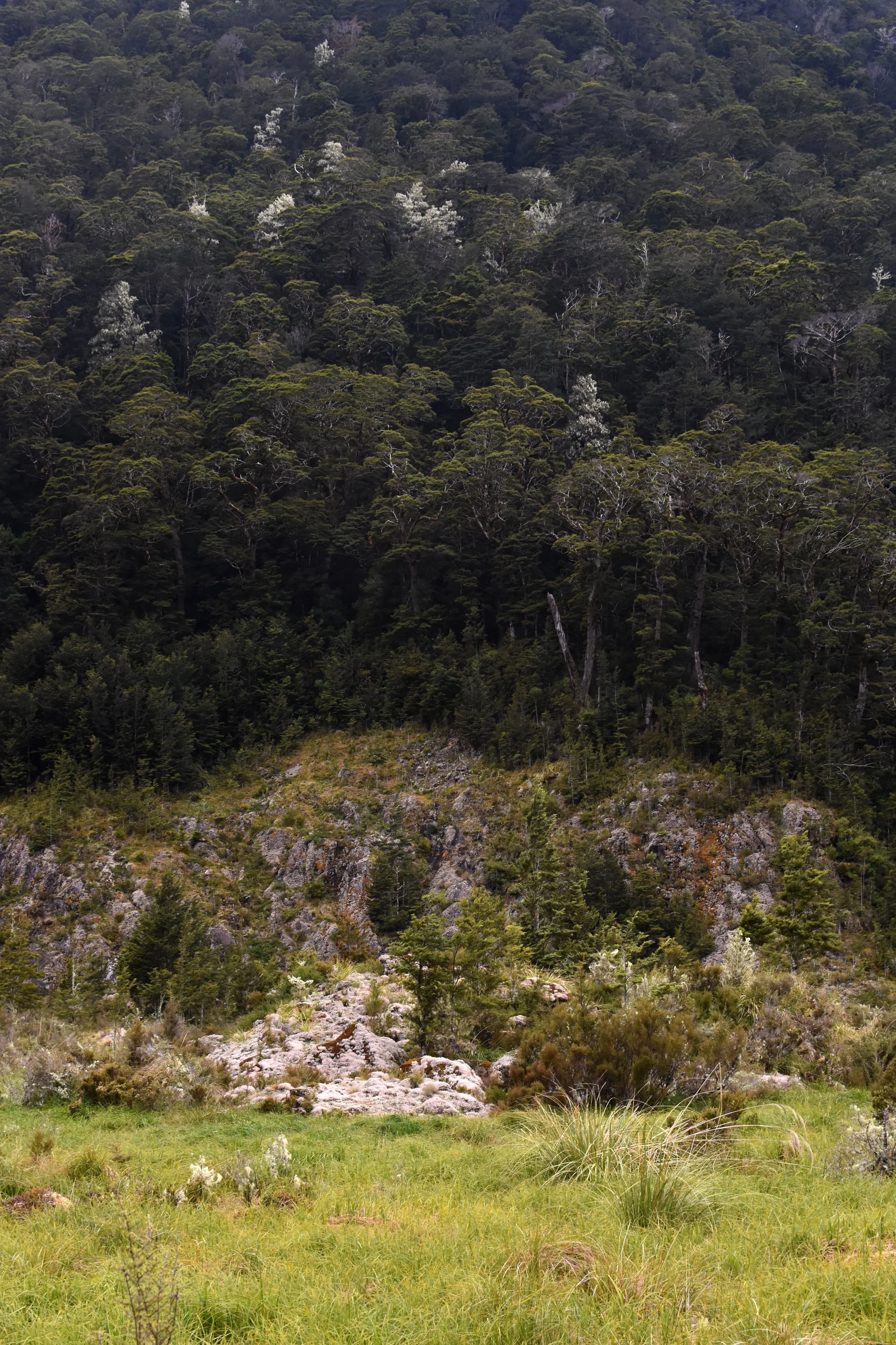 About three quarters of the way to the hut, I made a stop at these big limestone bluffs near the top of the forest to get a recording. The bluff was reflecting back a nice composite of all of the forest sounds below. With my eyes closed, listening to forest, I started to hear a bit of a rustle behind me. Looking towards the sound I saw it was this cheeky alpine parrot called a Kea, and he was dragging my camera by the strap down the trail! He was a pretty curious fellow, and when I went to grab my camera, we had a bit of a standoff as he kept trying to taste my recorder and my headphones, now on the trail behind me. After about ten minutes of this exchange, we agreed to go our separate ways, and I made sure to check my pockets for everything important as I walked away.