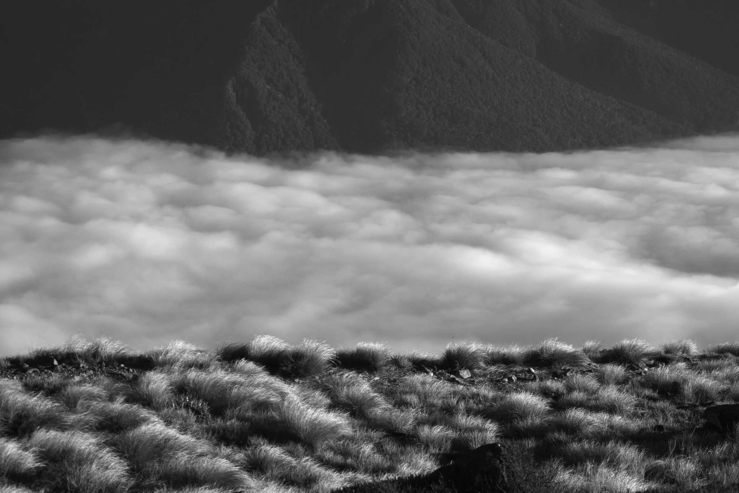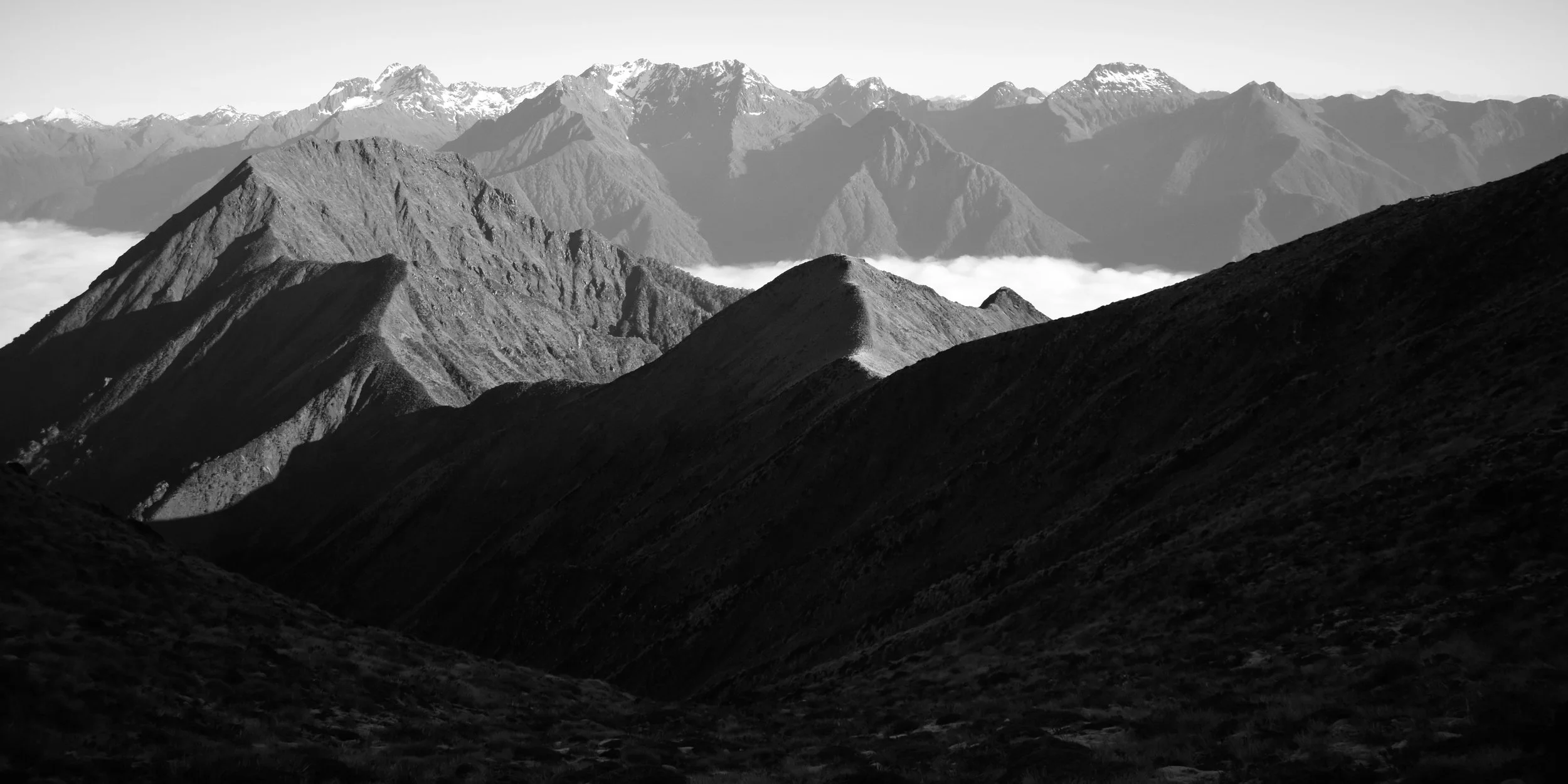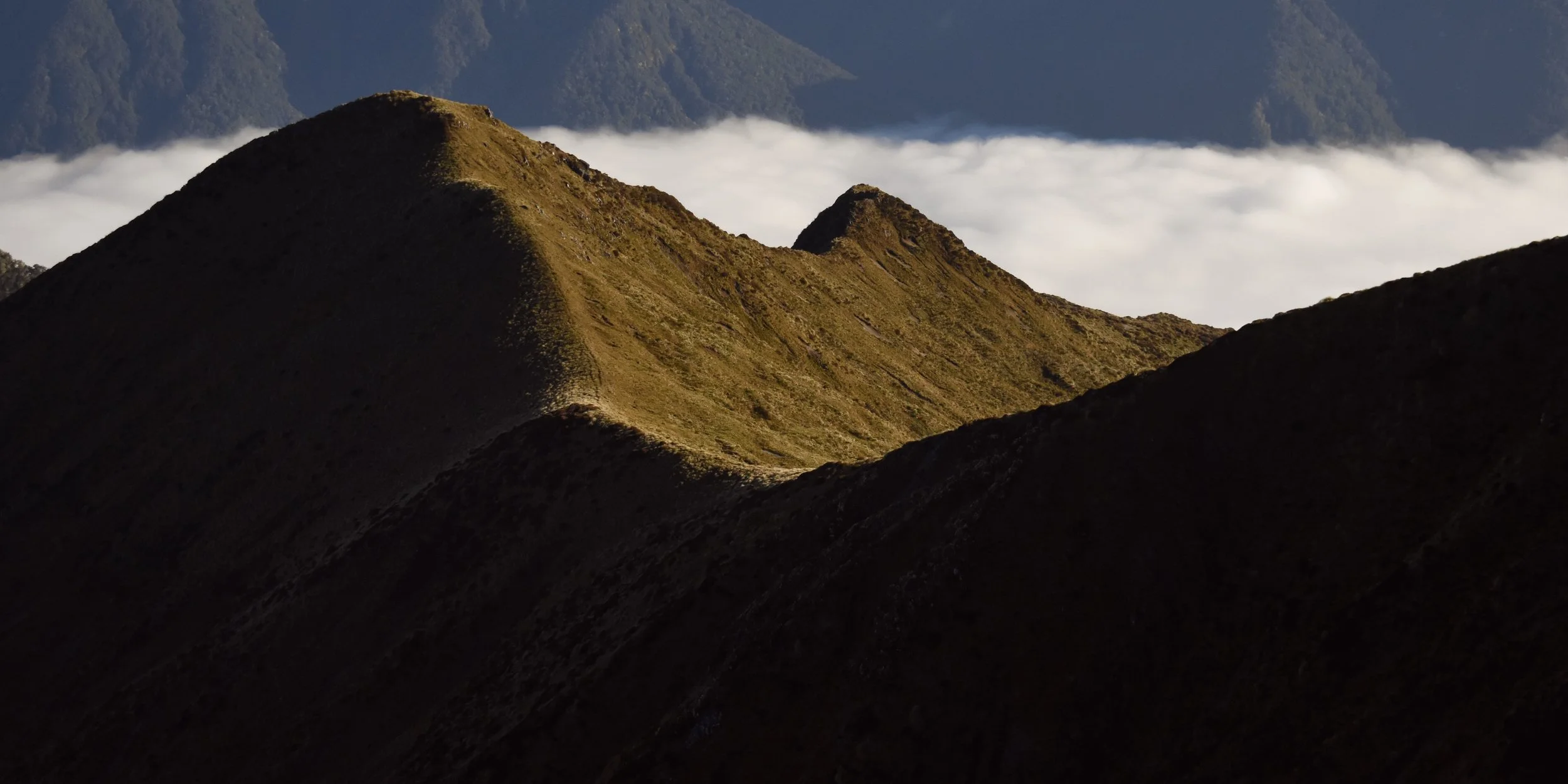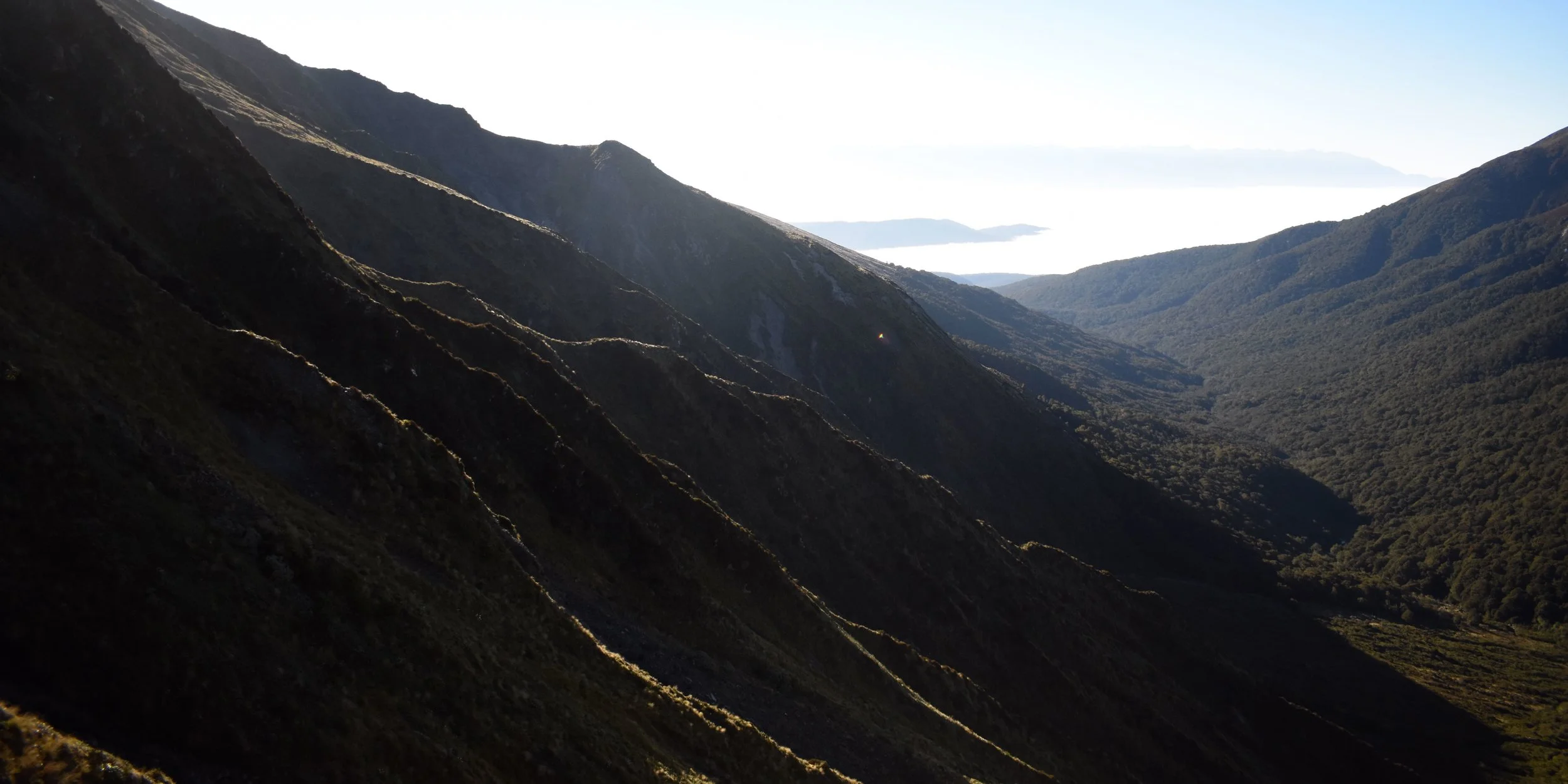 This days walk was to be almost entirely on the ridge line of the mountain, with no shade and no water sources. I guess NZ has a decent sized hole in the ozone layer above them, so the sun also always feels an extra bit intense too. With this in mind, I decided to start out with the twilight just before 6am. The lake and countryside below was completely covered in low clouds, making the hike feel all the more mysterious in the morning. The view as the sun rose above the clouds was so gorgeous I put my headphones on and actually danced up that mountain. Carefully danced up, i should say, as it would have been quite a long tumble off of the track if I lost my footing.