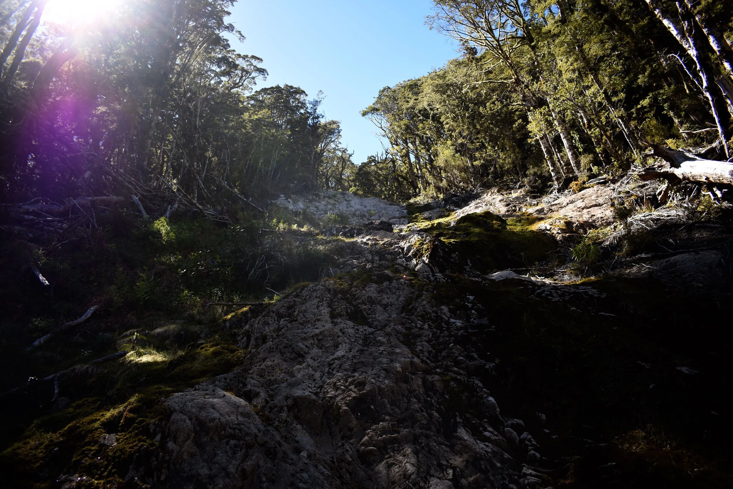 So much sunshine! I’m starting to feel a bit deprived of the authentic fiordland experience as i’ve hardly seen any rain. Again, another great problem to be having. The first days hike winds along the shore of Lake Te Anau and eventually starts making its way up out of the beech forest to the Luxmore hut on the shoulder of (you guessed it) Mount Luxmore.