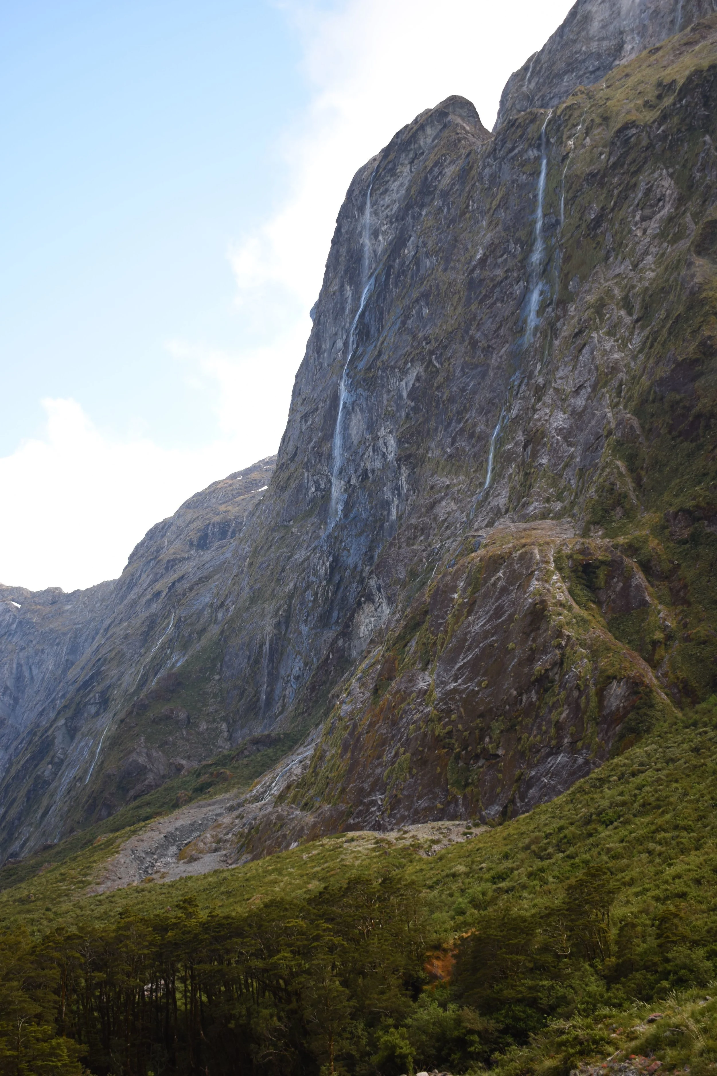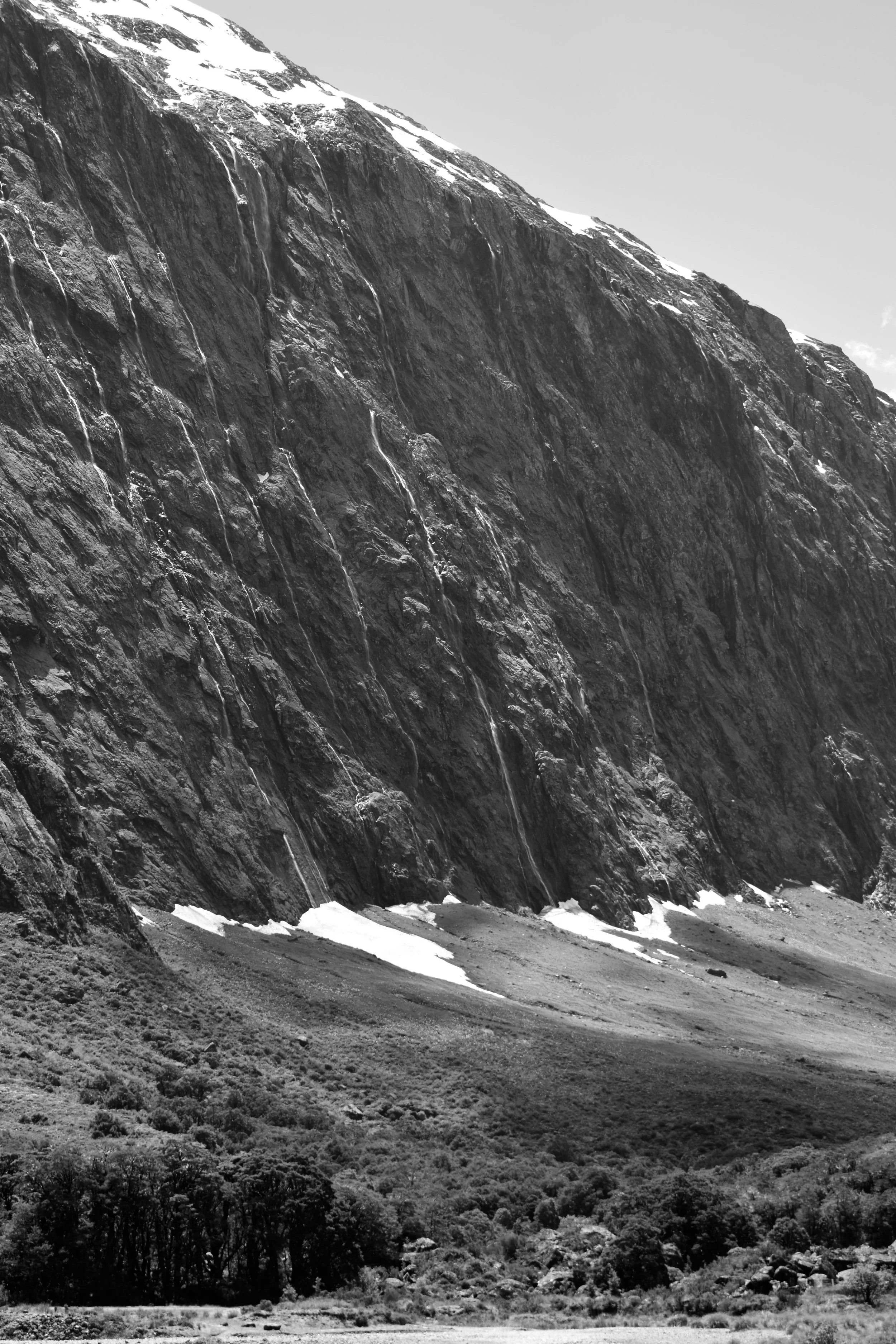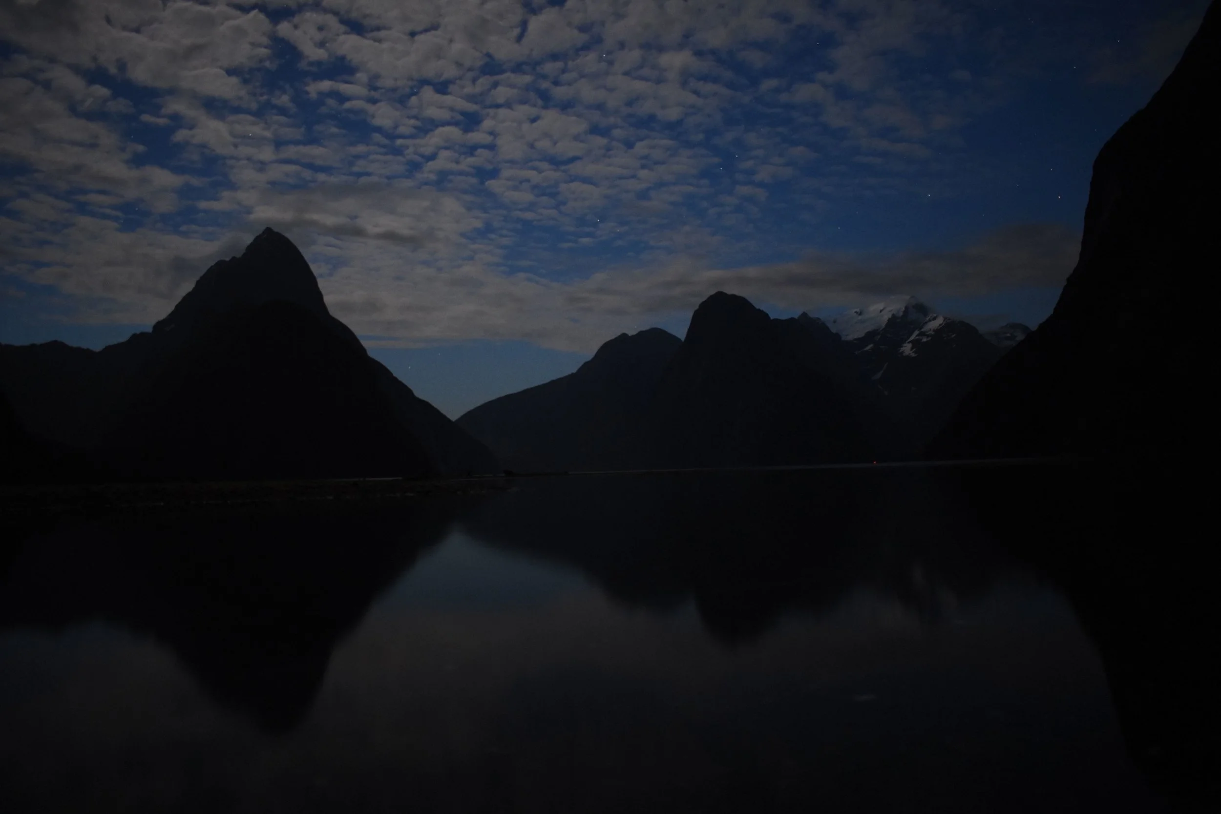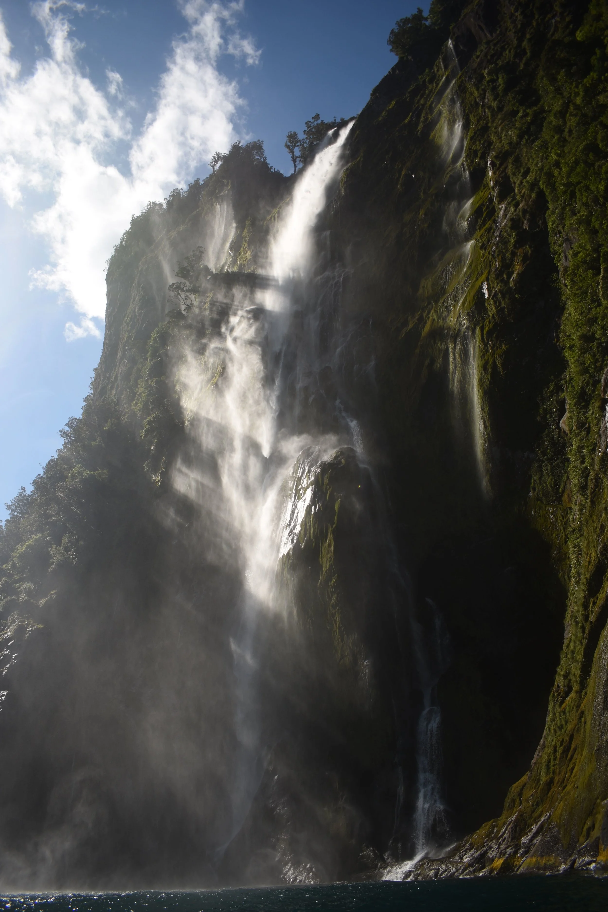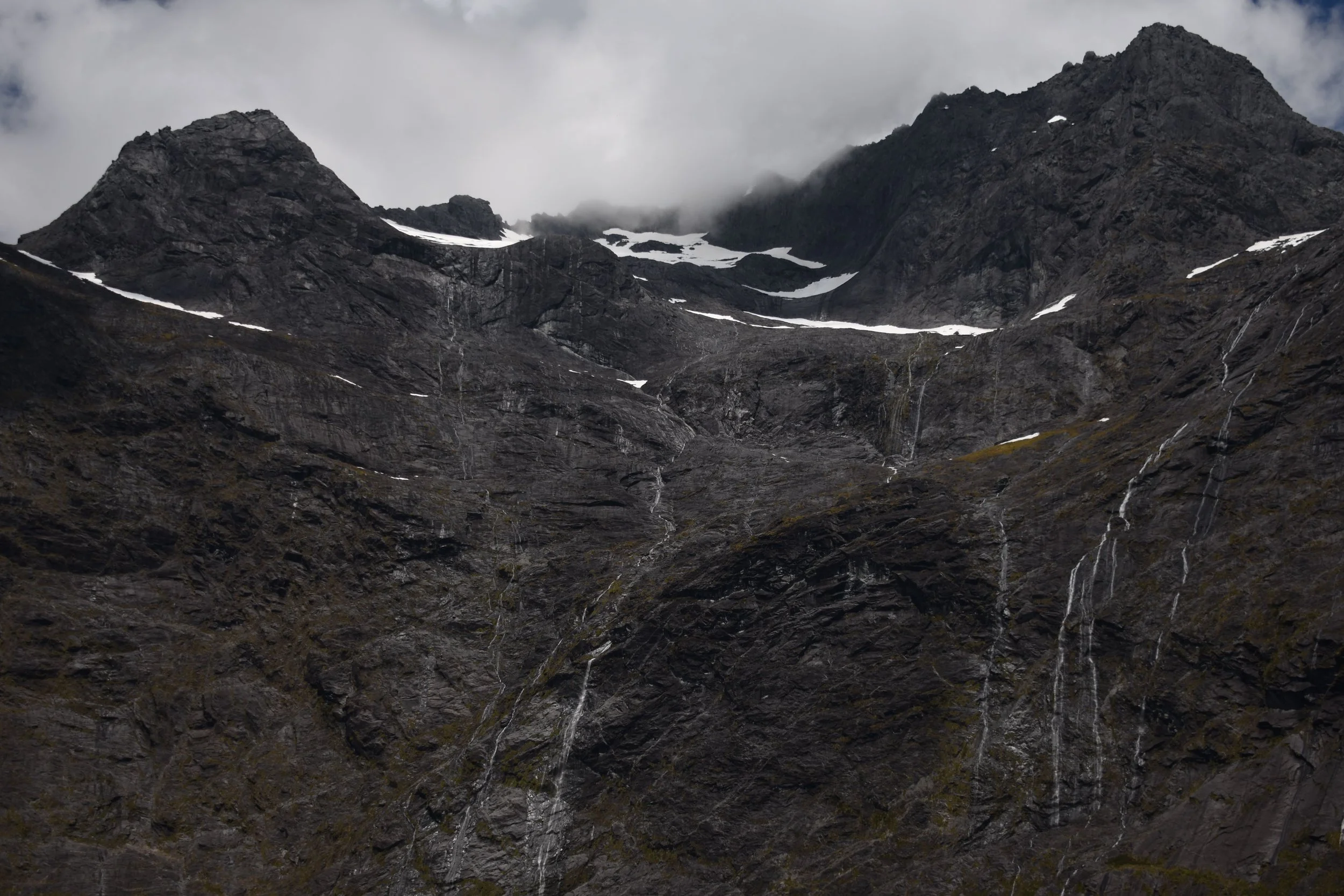 Milford sound is at the far north end of Fiordland. From the coast it’s well hidden, as it’s sides overlap at the mouth. It’s about a two hour drive, without stops, from Te Anau, and is the only easily accessible of the Fiords. Because of this it is one of the biggest attractions in New Zealand. There’s a small township there, and during the season when it’s accessible by road, about two hundred fifty people work there, either in the tourism industry, or fishing for lobster. The nearest police are two hours away, so at the beginning of the season, a cop drives up and genuinely tells the staff to follow just one rule. “don’t be a dick”. At the end of the day, i guess that really does cover it.